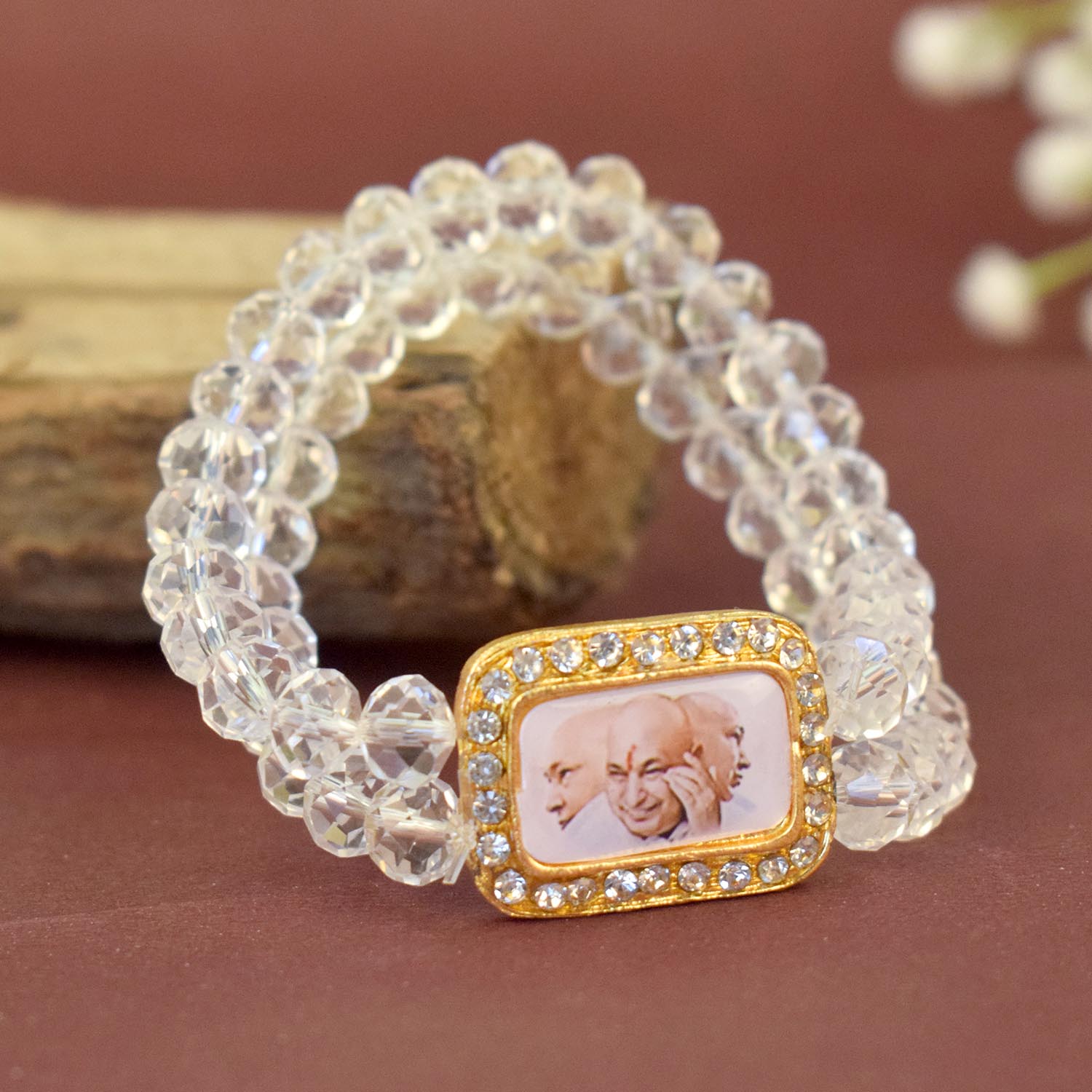 Clear Shiny Beads Single Layer Guruji Swaroop Bracelet