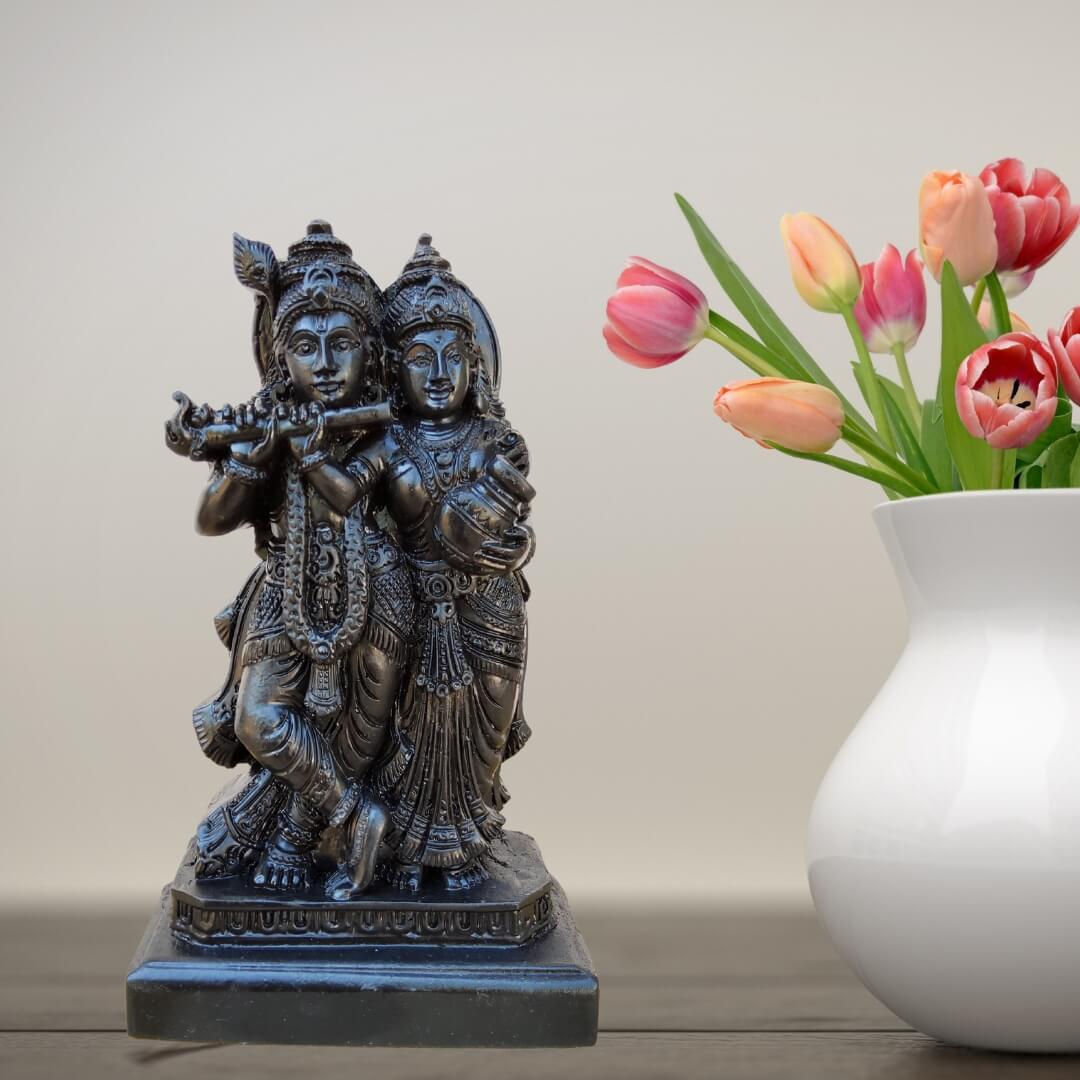 BLACK RADHAKRISHNA STATUE IN POLYMARBLE-16 CM