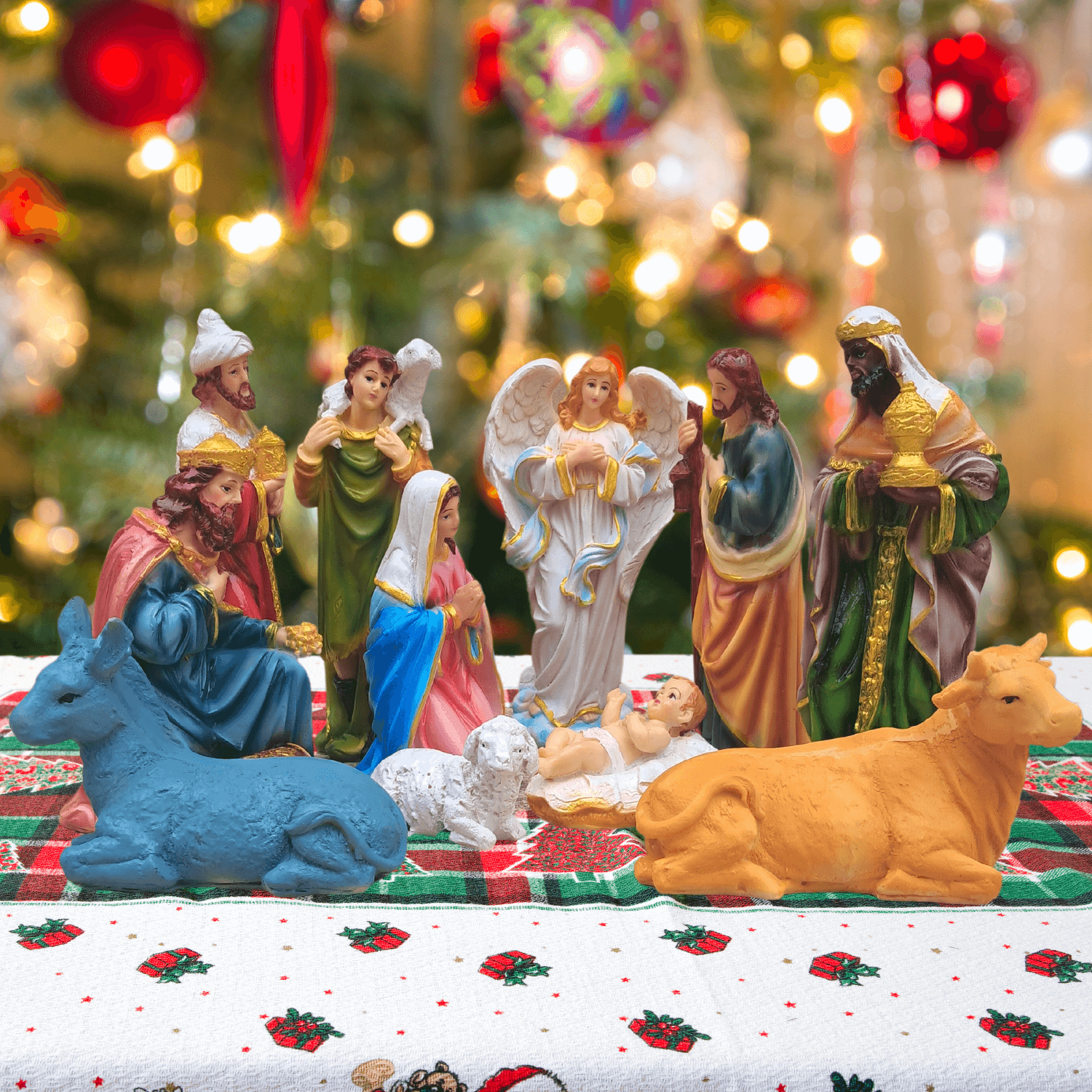 Add a touch of magic to your Christmas celebrations with our Real-Life Christmas Crib Set! Crafted in polymarble, it brings the nativity scene to life with beautiful colors and intricate details. Check out the individual images for a closer look.  Made with love in Kerala, India, this 11-piece Real-Life Christmas Crib Set is a perfect addition to your festive decor. Glossy Finish adds to its beauty.