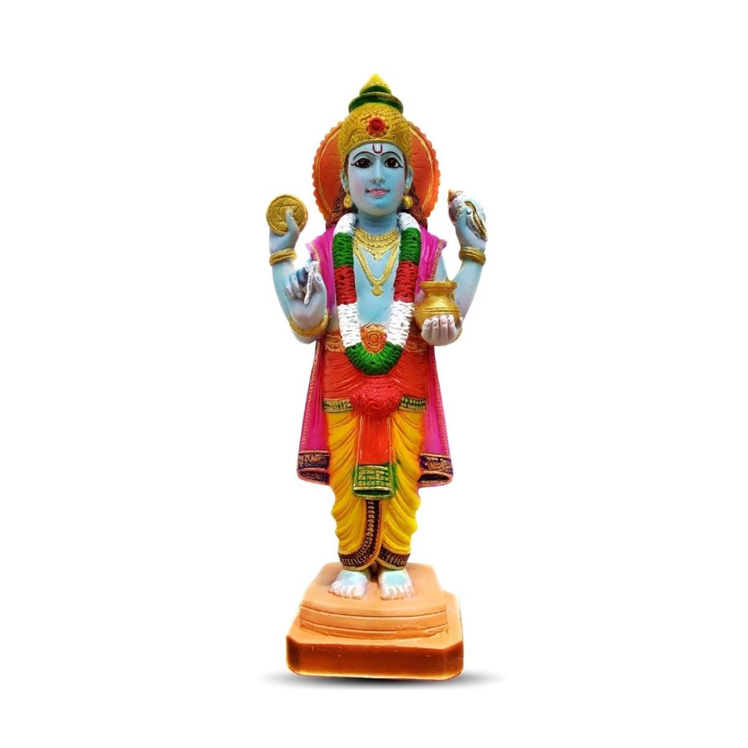 Introducing The Arte House's Dhanvantari Idol, made of polymarble. This intricately designed statue boasts eye-catching colors and an anatomically correct structure that truly sets it apart. It's ideal for placement in your pooja room, living room or showcase, and is difficult to find elsewhere due to its life-like appearance.