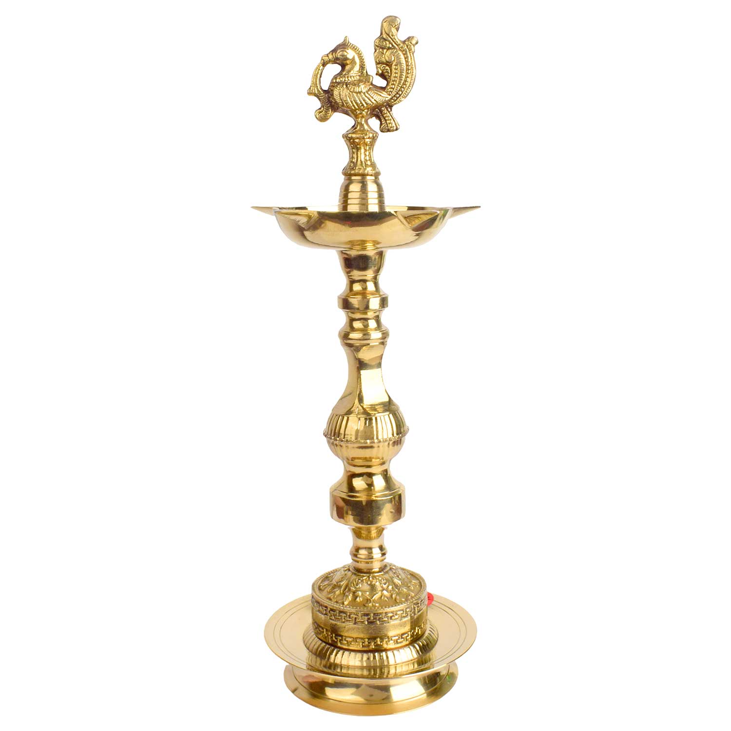 19 Inch Embossed Brass Peacock Kerala Samai Diya | Brass Peacock Diya | Kerala Samai Deepam | Embossed Brass Diya | Traditional Kerala Diya | Brass Oil Lamp | Spiritual Brass Lamp | Pooja Diya | Peacock Design Diya | Kerala Temple Lamp | Indian Ritual Lamp | Brass Diya for Pooja
