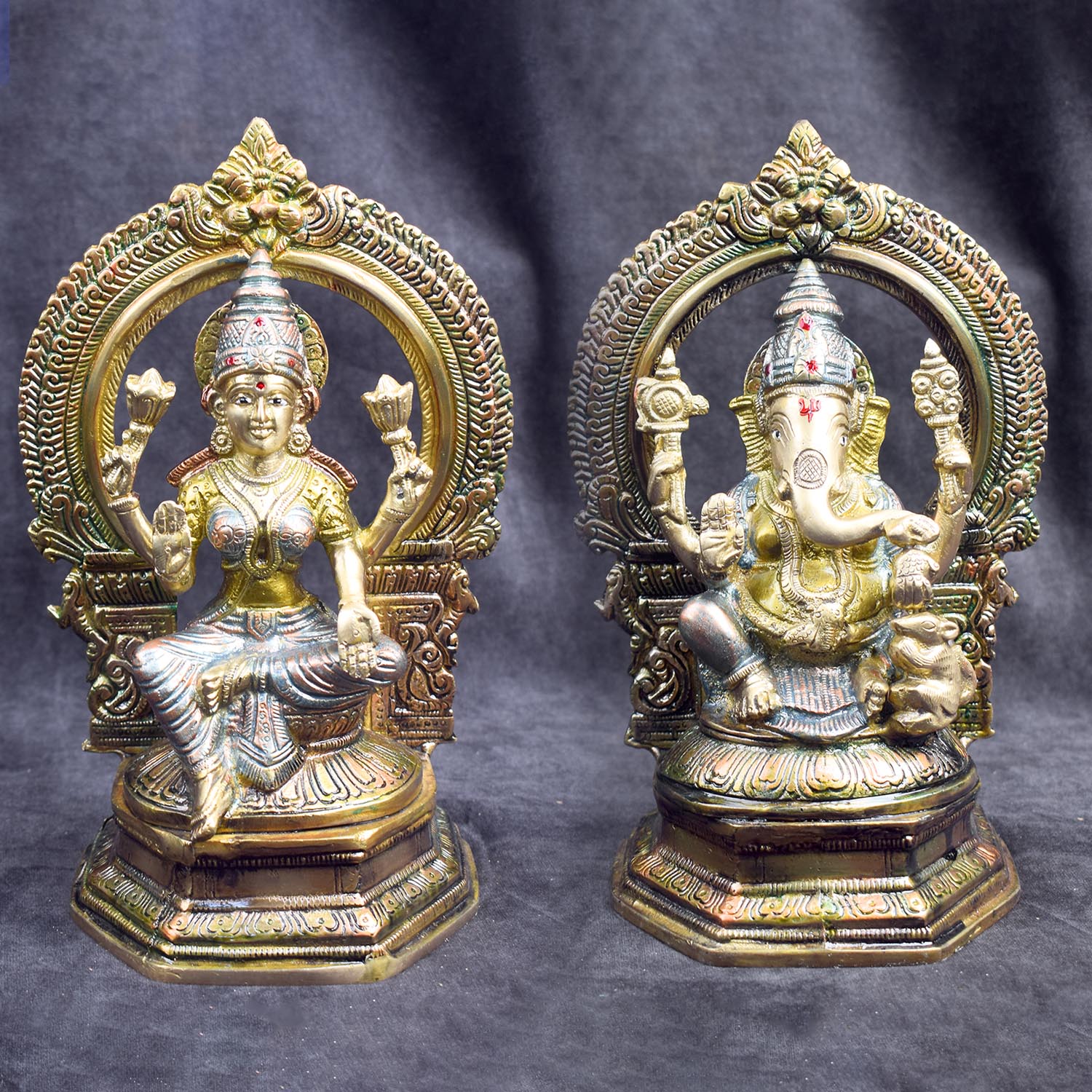 - Item Name: 9.3 Inch Elegant Brass Lakshmi Ganesh Idol