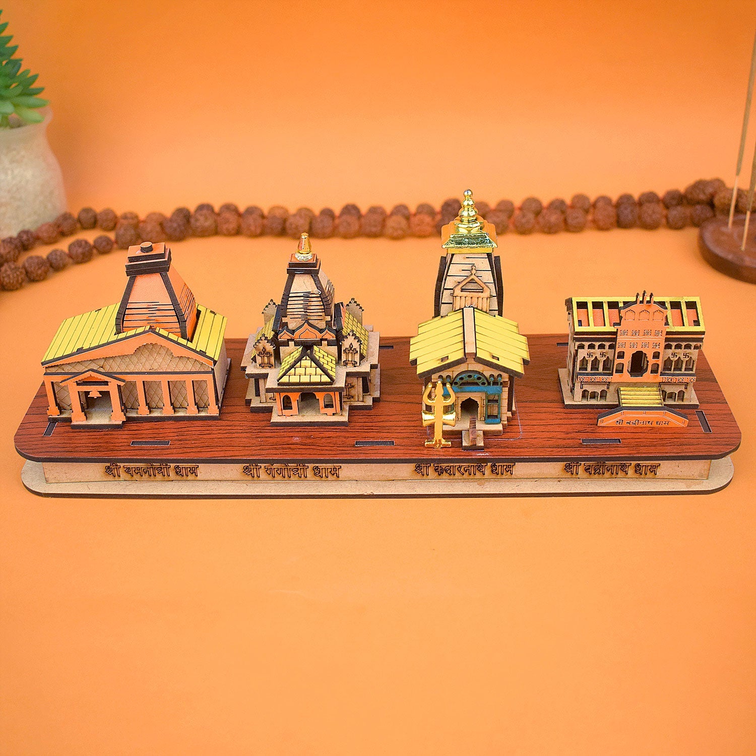 char dham 3d showpiece | plywood temple decor | badrinath kedarnath gangotri yamunotri | char dham wooden replica | pooja room decor | spiritual home decor | satvikstore.in