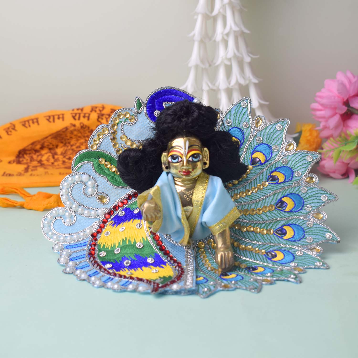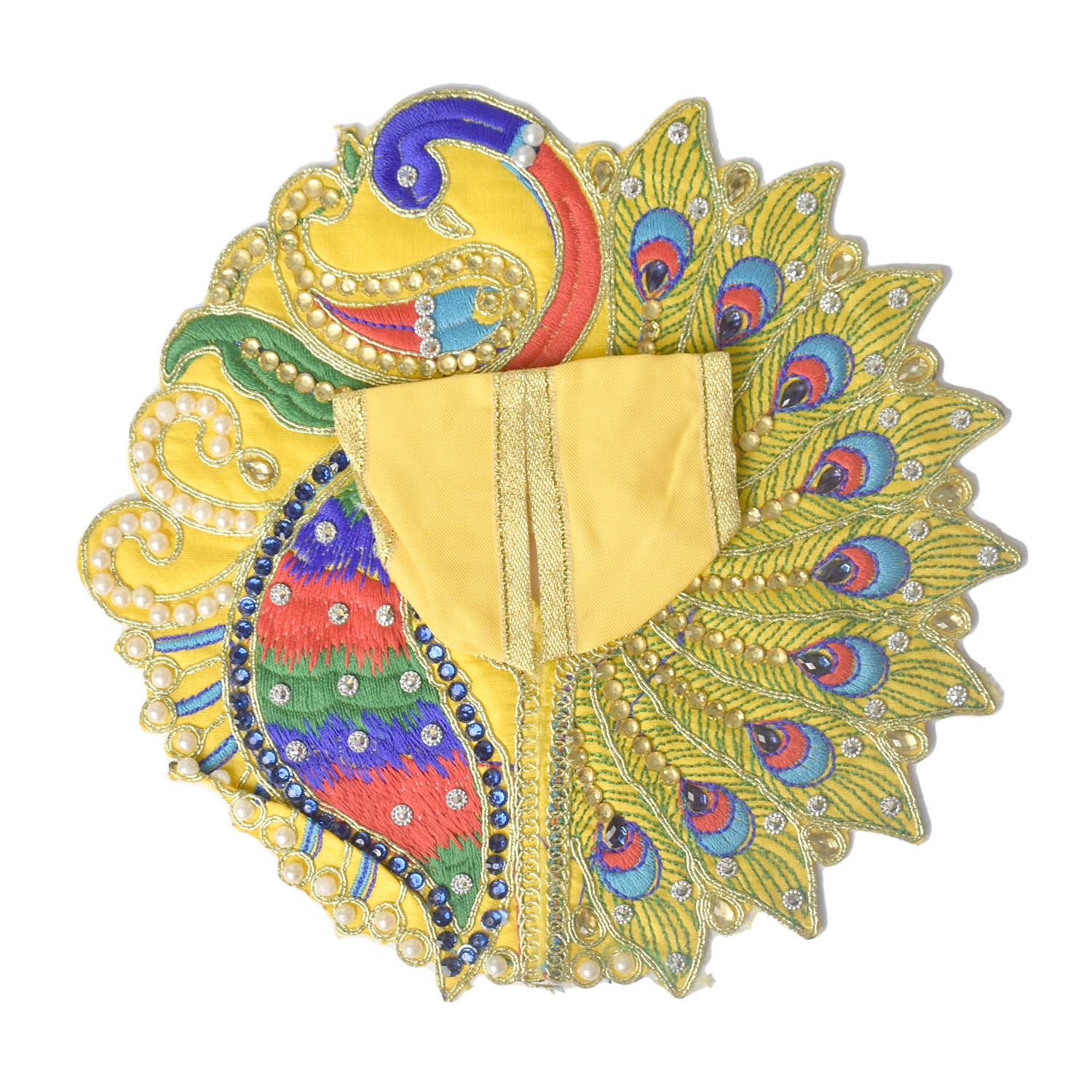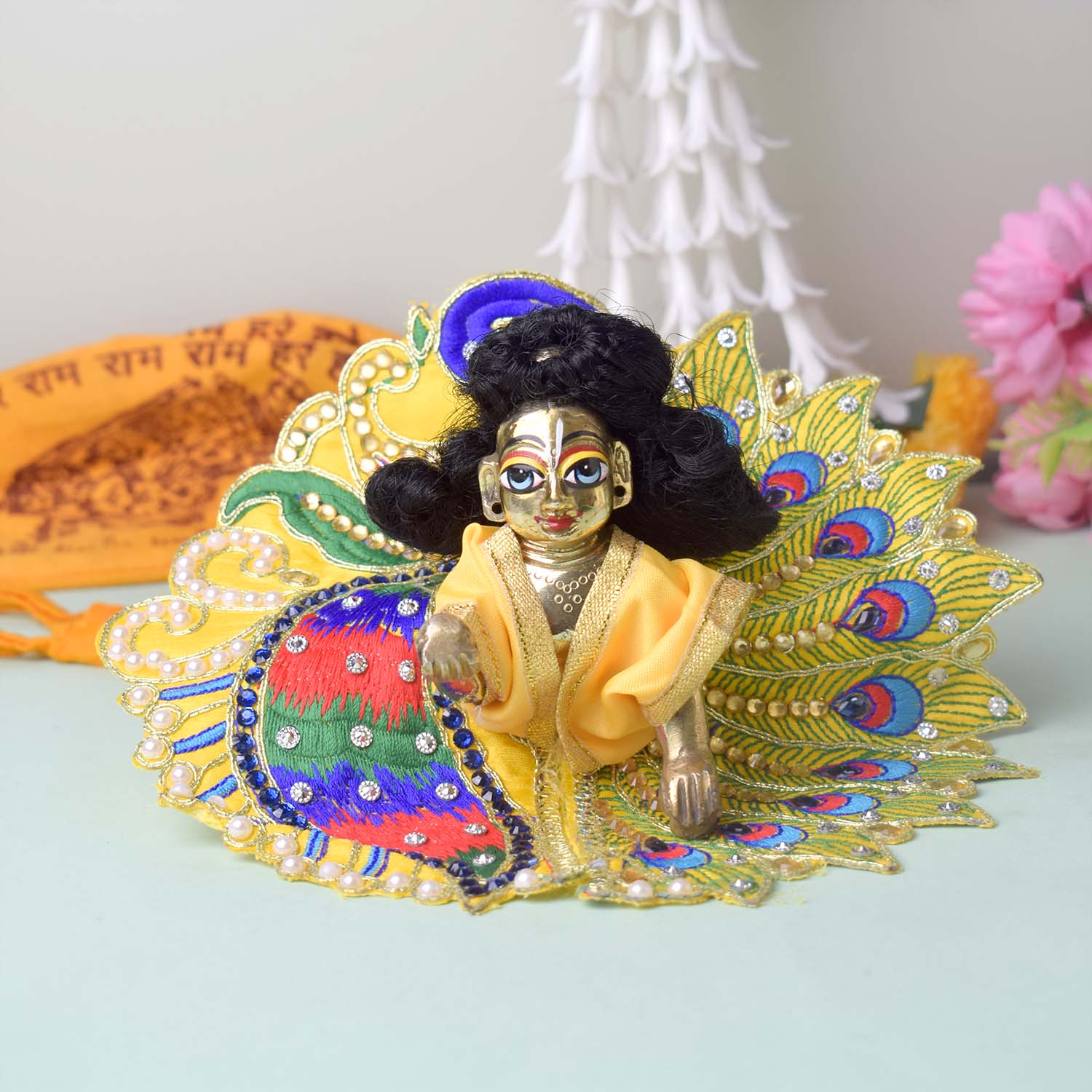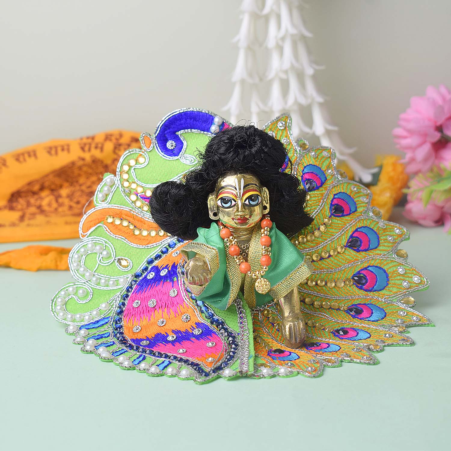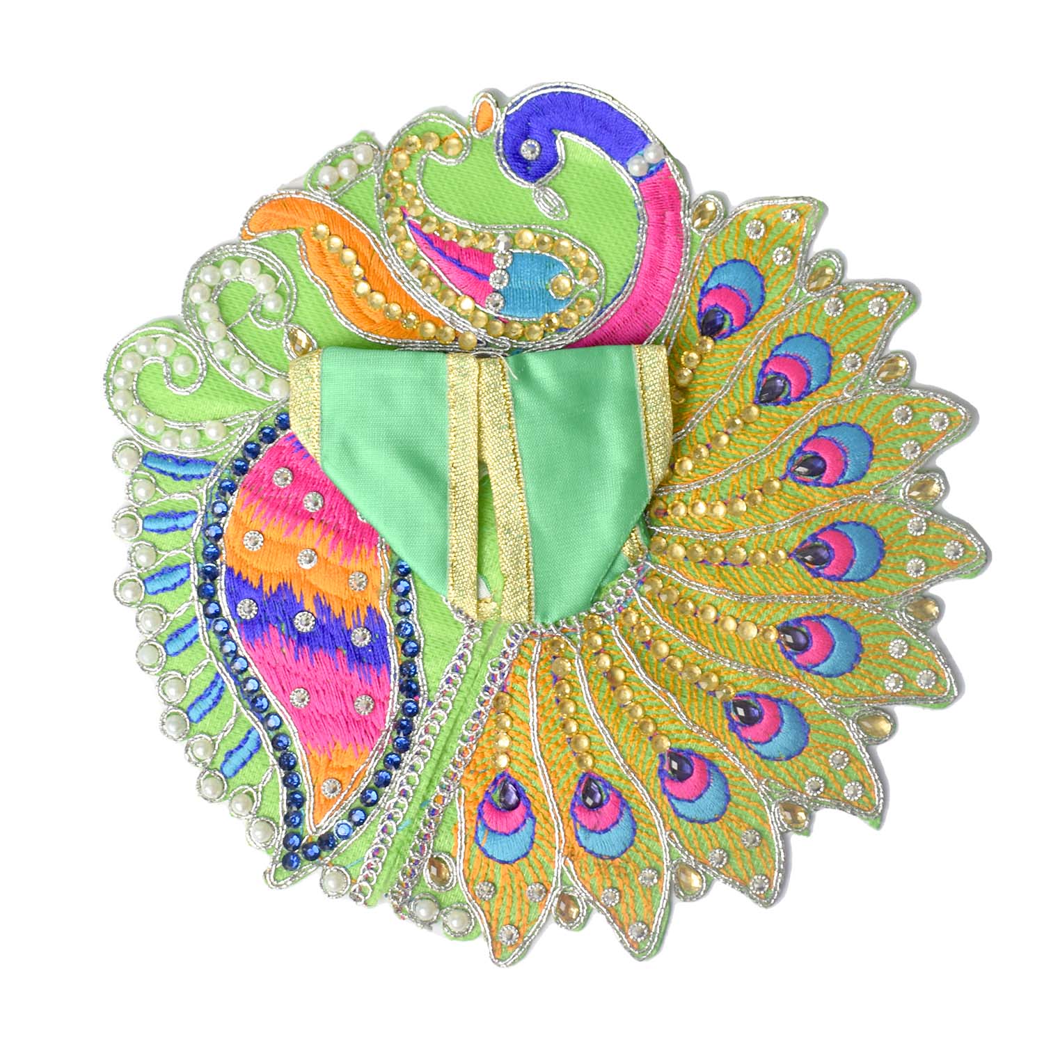 laddu gopal peacock dress | mor pankh gopal poshak | embroidered krishna vastra | stonework bal gopal dress | kanha ji peacock outfit | laddu gopal dress with feather design | festive deity dress | vibrant gopal poshak | fancy krishna clothes | pooja dress for laddu gopal | designer gopal attire | lord krishna vastra online | mor pankh embroidery kanha dress