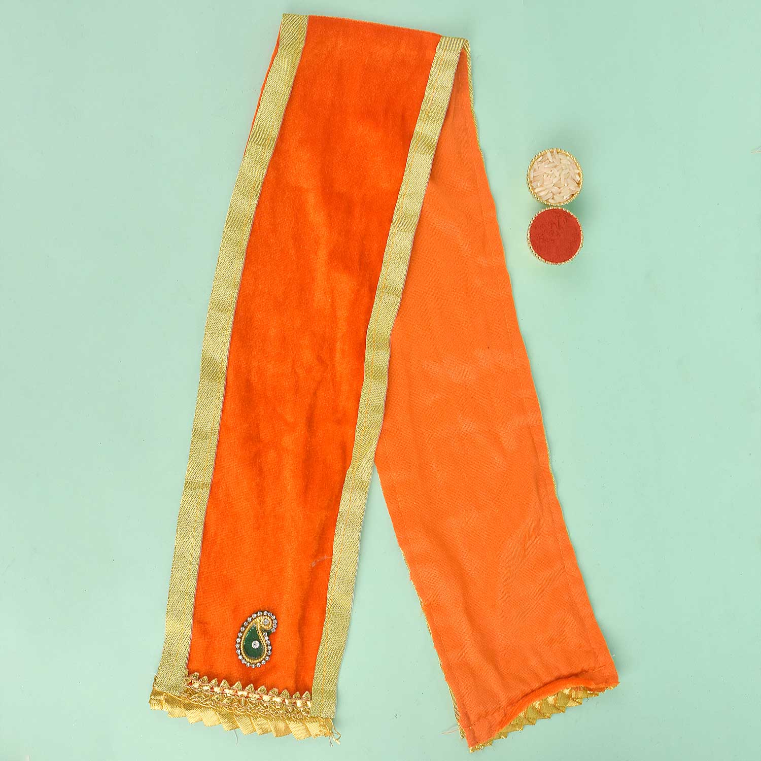 Orange Patka | Angvastra | Spiritual Duppata | Ganesh Chaturthi pooja cloth | Ganesha Angvastra | Religious cloth for Ganapati celebration | Ganesh Chaturthi | Orange pakta for ganesha |