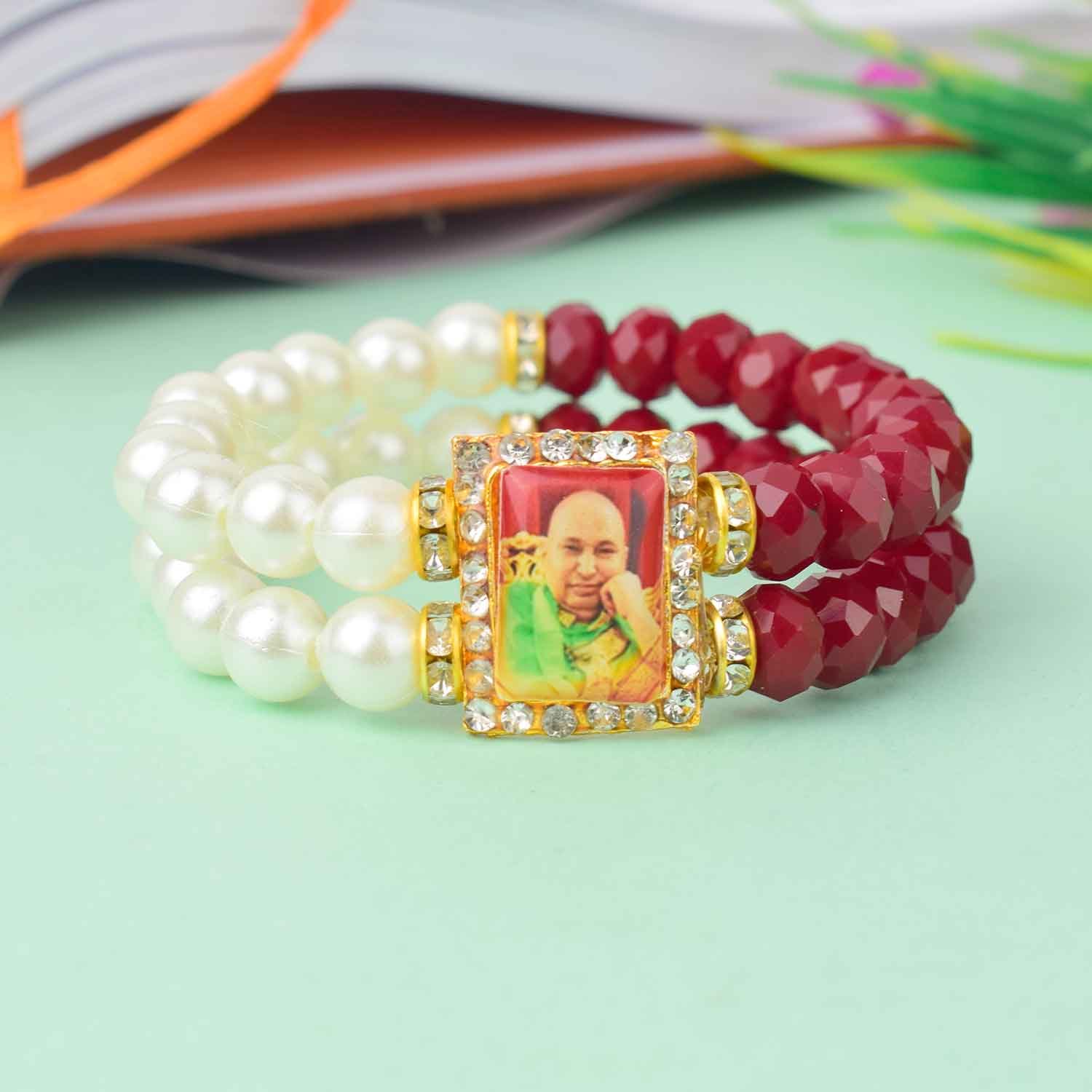 Serene Guruji Swaroop Bracelet (Assorted) – White Pearls & Colored Beads
