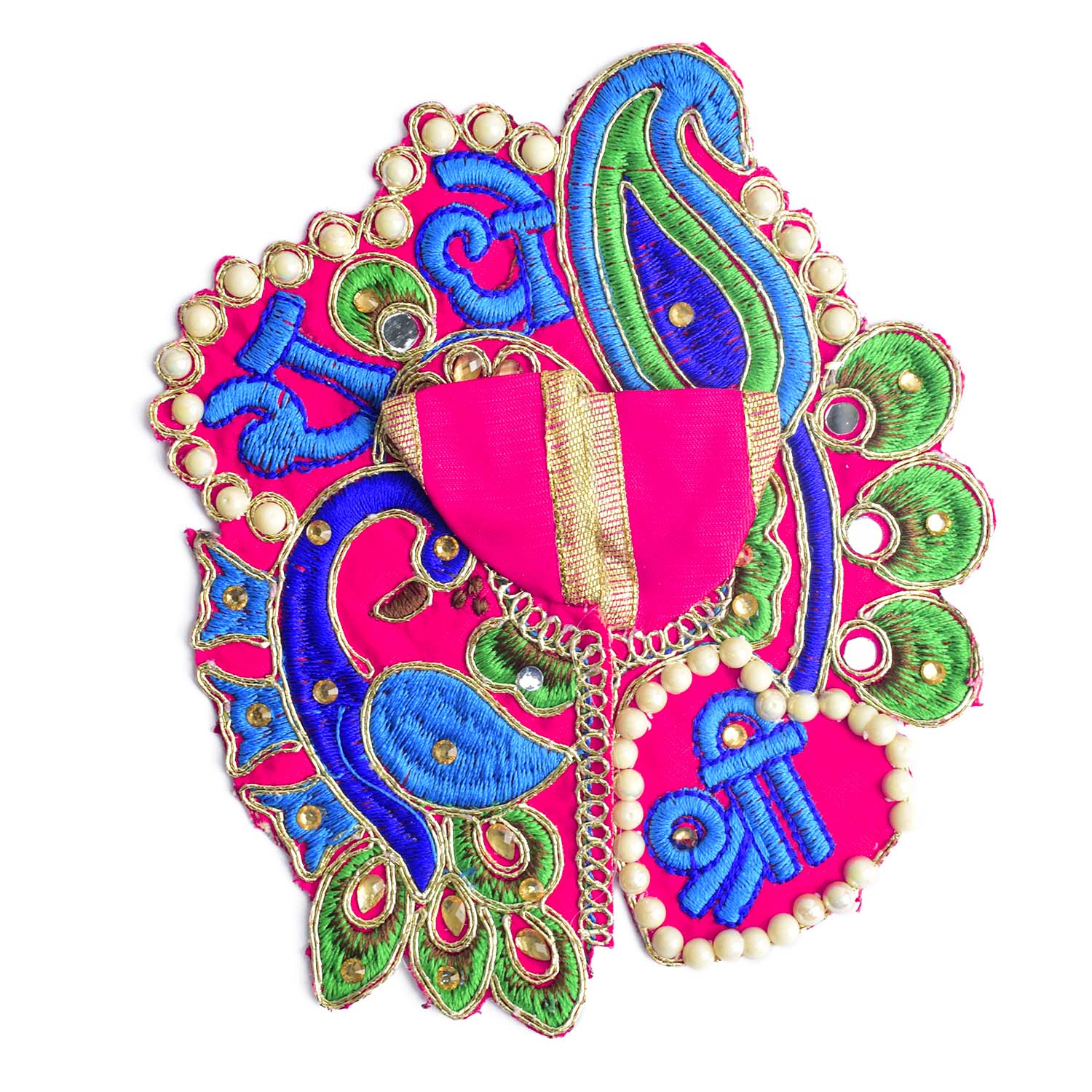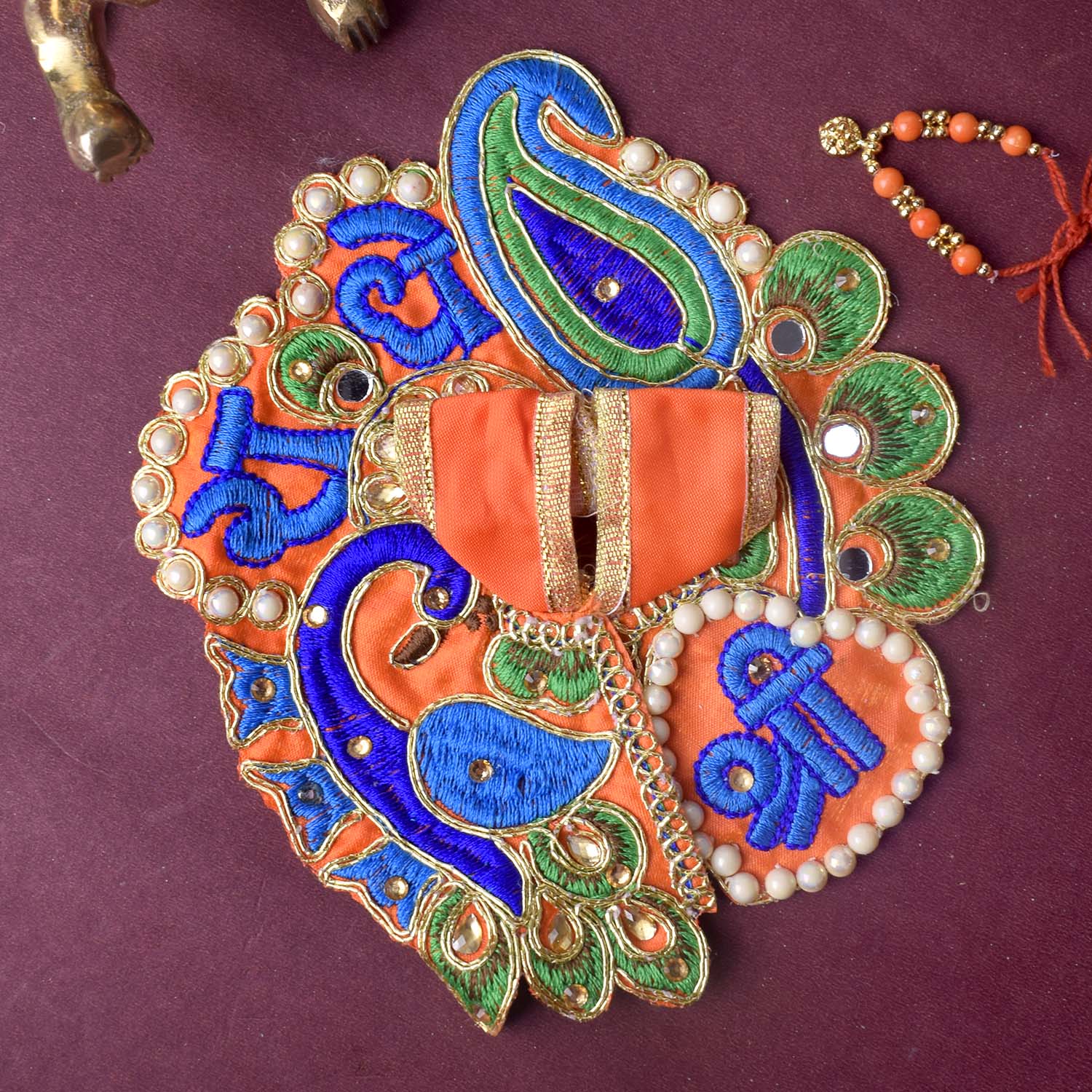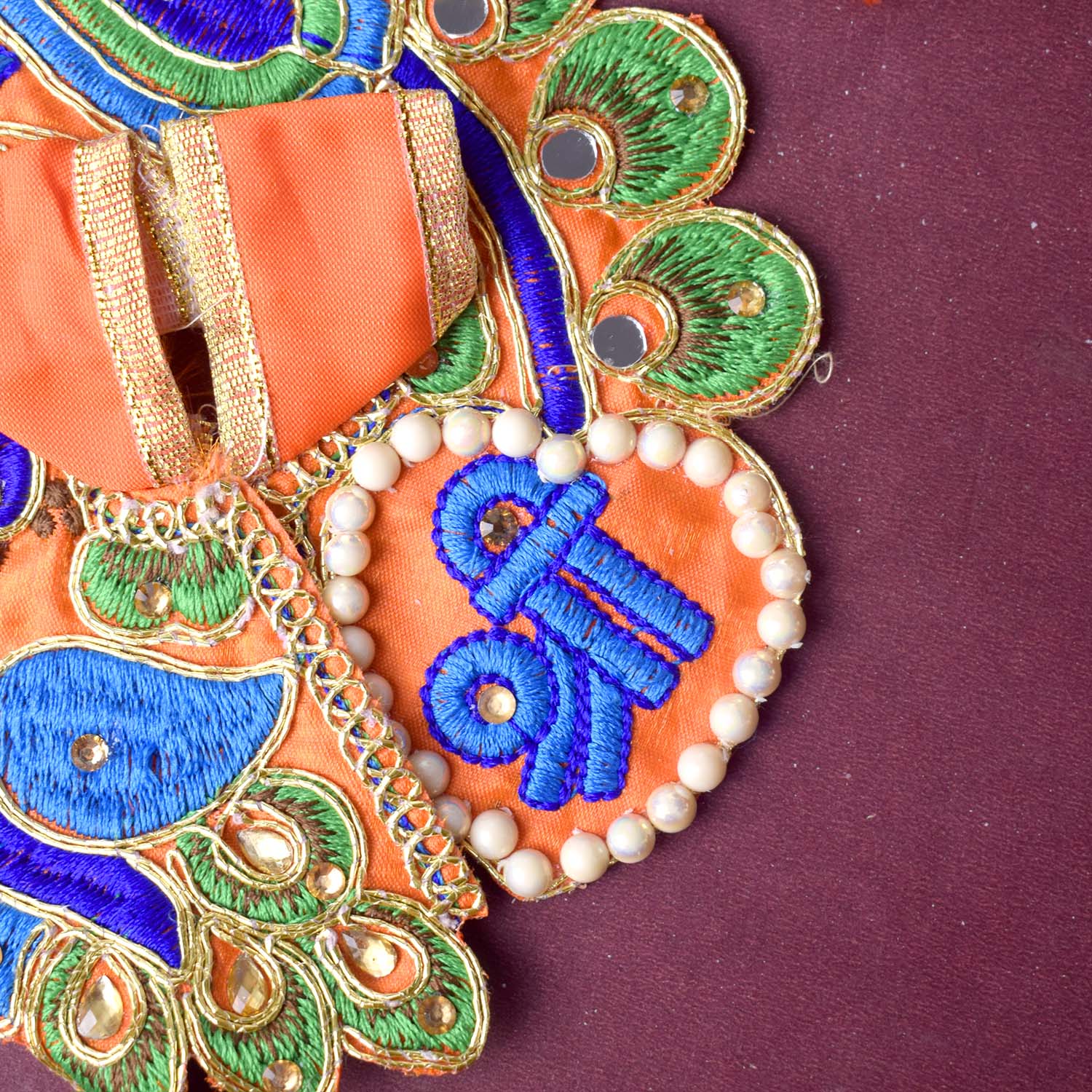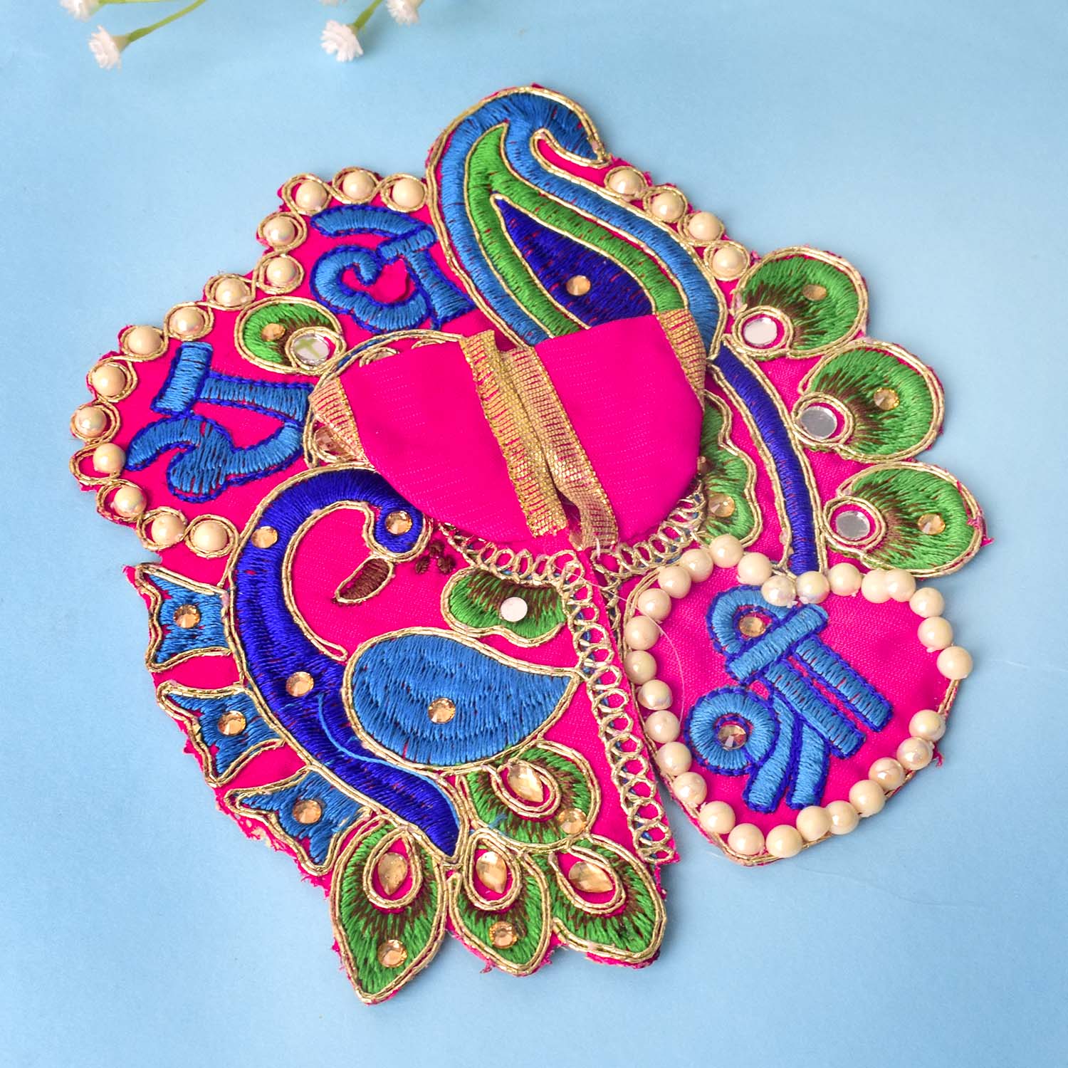 Celebrate devotion and artistry with our stunning Laddu Gopal dress, featuring the divine “Shri Radhe” embroidery as its central highlight. This exquisite poshak combines detailed stonework with a graceful peacock-inspired silhouette, radiating divine charm. The sacred Shri Radhe inscription brings deeper meaning and elegance to your pooja rituals.