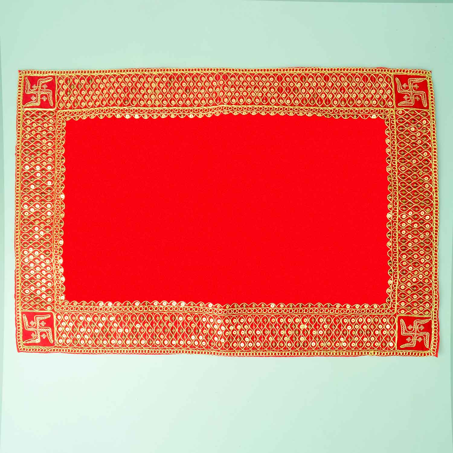 Size and Craftsmanship: 16 x 24 Inch Size, Made from High-Quality Velvet with Swastik Design and Golden Lace all over the Border